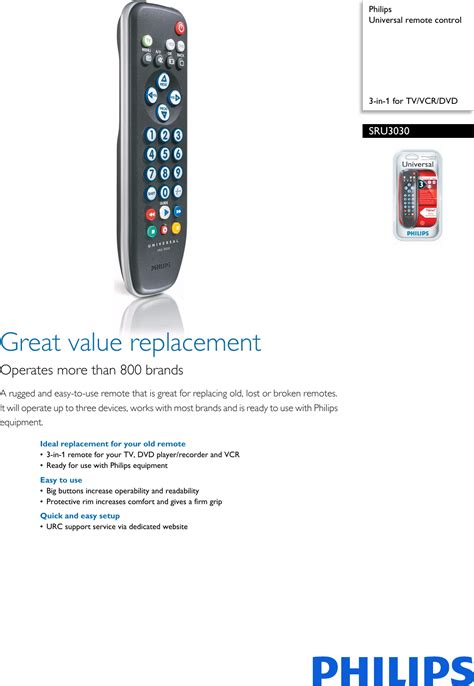 Philips 3 Device Universal Remote Control Manual Codes